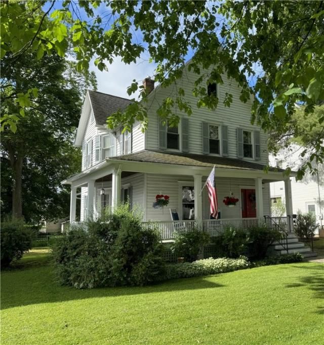 Edit mortgage details for a more accurate paymentCharming Historic Home at 319 Washington Street!Step into timeless elegance.Filled with classic charm and character.From the moment you arrive,the inviting wraparound front porchâ??framed by vibrant seasonal flowers.Enter through a stately solid wood door into a grand foyer featuring exquisite woodwork, pocket doors and a beautifully crafted staircase,offering a stunning first impression.The stone-tiled hallway provides both durability and easy maintenanceâ??ideal for New Yorkâ??s changing seasons. Rich hardwood floors and intricate wood moldings flow throughout much of the home, enhancing its historic appeal.The spacious first floor includes a full eat-in kitchen, formal dining room,living room,& a cozy family room,complete with a side entrance to the porch for fresh breezes and convenient outdoor access.Upstairs,you'll find 3 generously sized bedrooms and a newly renovated full bathroom with laundry.Full-size attic offers storage or potential future expansion.The detached one-car garage includes electricity and a dedicated workshop area.Schedule your showing and see all that this home has to offer.